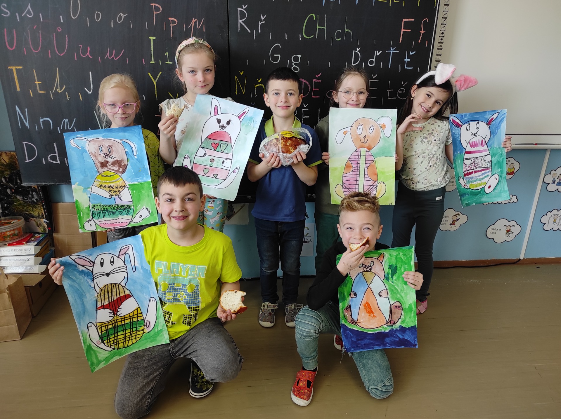 Od 3. do 5. dubna jsme chodili do školy netradičně oblečeni. V pondělí jsme přišli v modré barvě, v úterý v šedivé a ve středu v zelené. Tento týden byl totiž celý ve znamení Velikonoc. Řekli jsme si tedy spoustu zajímavých věcí týkajících se těchto dní a po naší třídní velikonoční středě vyrazili na prázdniny :)