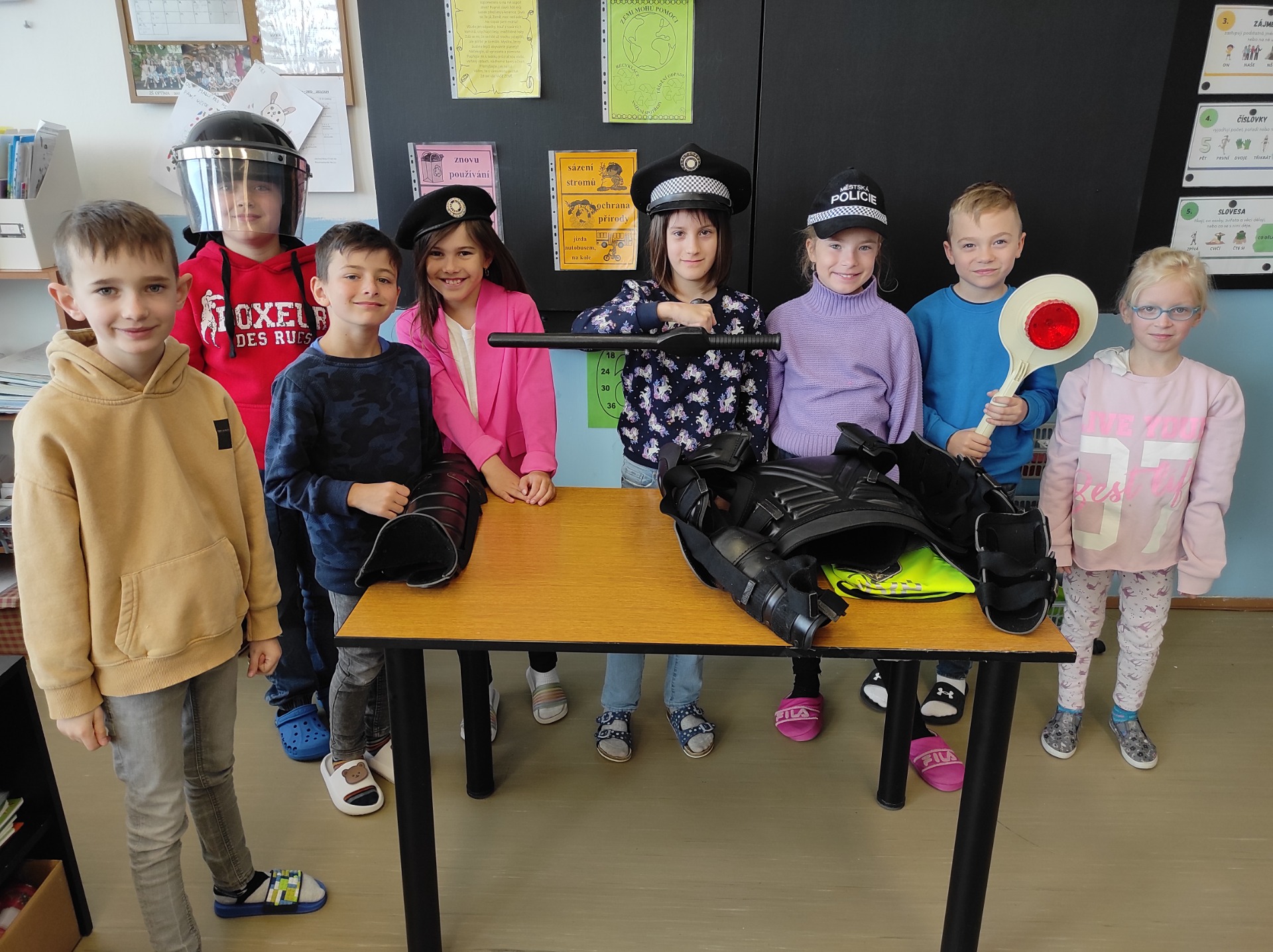 Navštívila nás paní Švábová, která s dětmi probrala důležitá telefonní čísla, bezpečnost, první pomoc a především výbavu městské policie, která žáky velmi nadchla.
