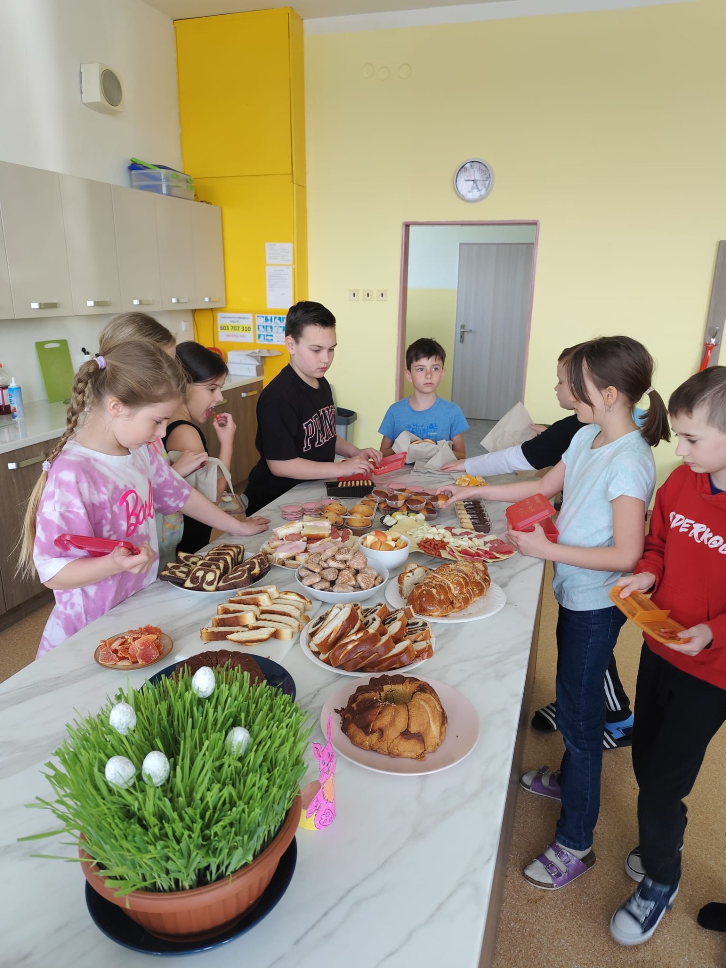 Nechybělo ani malé pohoštění, o které se postarali sami rodiče. Děti si pochutnaly a odpoledne si užily. Velikonoční dílna se vydařila na jedničku. Bylo vidět, že chvíle strávené společným tvořením mají smysl a posilují nejen vztahy ve třídě, ale i mezi rodinami. Děti odcházely nadšené a pyšné na to, co dokázaly společně s rodiči vytvořit.
