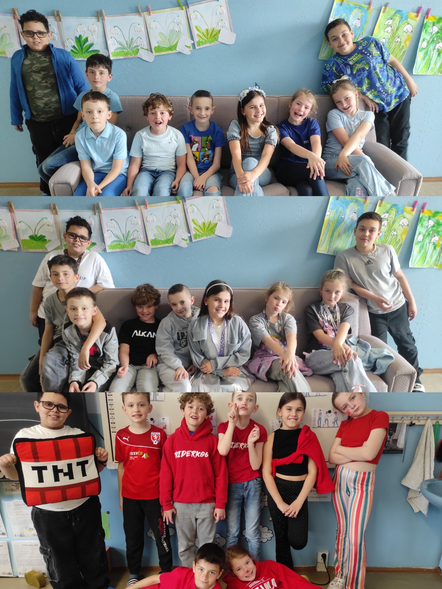 V týdnu před Velikonoci se naše škola proměnila v barevné a veselé místo. Každý den jsme se oblékli do jiné barvy podle velikonočních tradic. V pondělí jsme přišli v modrém, úterý bylo šedivé a ve středu jsme zářili červenou barvou. Barevné dny nebyly jen o oblečení. Připomněli jsme si tradice a zvyky, které jsou spojeny s těmito svátky.
