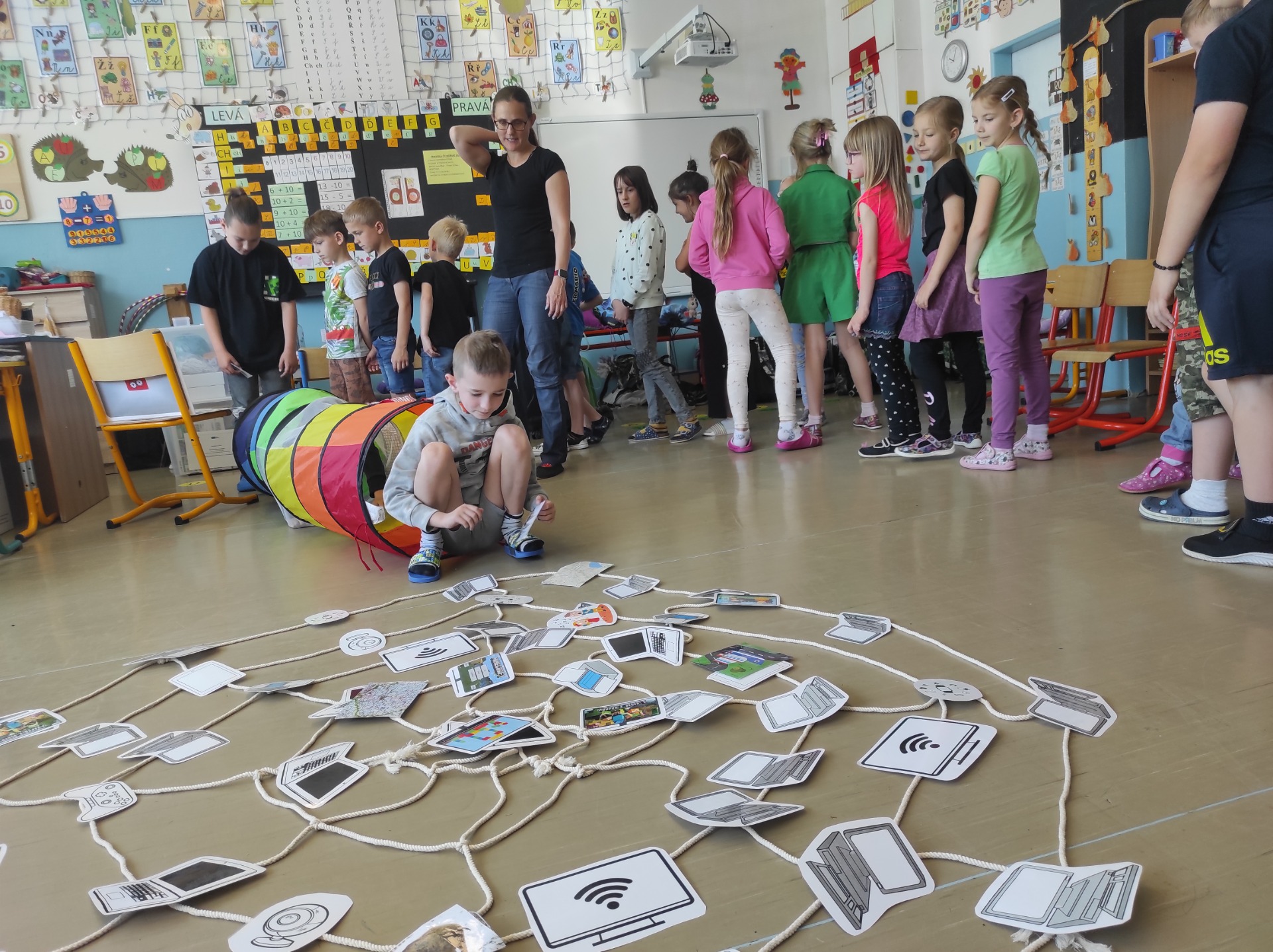 Navštívila nás lektorka z malé technické univerzity. Žáci celé dvě hodiny rozvíjeli logické myšlení, komunikační dovednosti, prostorovou orientaci a představivost formou her. Dozvěděli se, jak funguje internet, postavili město, vedli sítě, aby signálem propojili všechny budovy. Z milé návštěvy byli všichni nadšeni. Tuto návštěvu můžeme vřele doporučit.