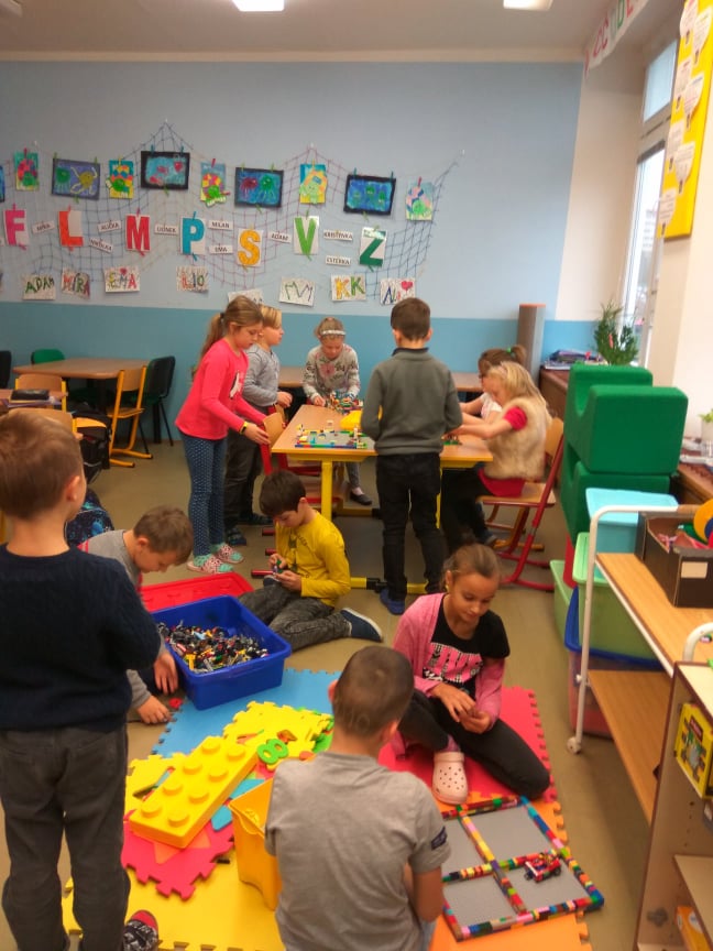 Naší nejoblíbenější činností o přestávkách je v současné době stavění lega. Ostatní hry ale také neleží ladem. Díky této vybavenosti se stmelujeme, komunikujeme a udržujeme ve třídě skvělou atmosféru.