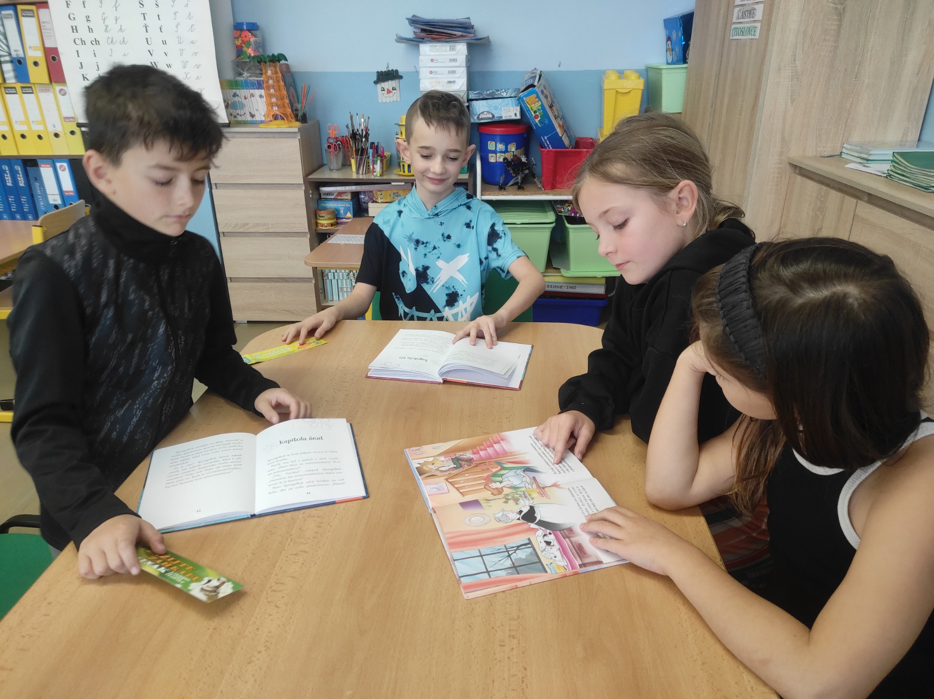 V hodinách čtení objevujeme nové příběhy, rozvíjíme čtenářské dovednosti a posilujeme lásku k literatuře. Střídáme mnoho činností - čteme nahlas i potichu, diskutujeme o textech, hrajeme Brainbox, pracujeme s pracovními listy, zkoušíme tvůrčí psaní, vyplňujeme čtenářské karty.