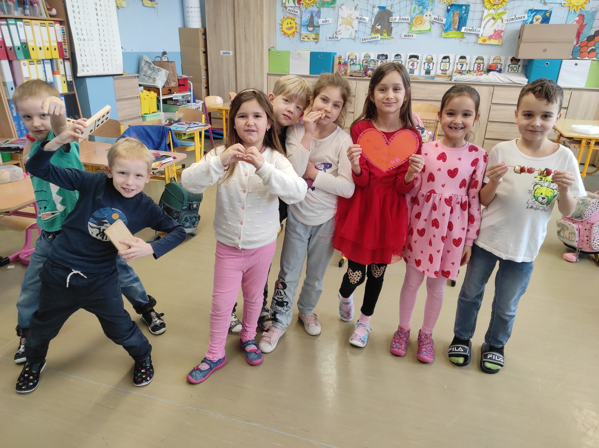 V pátek 13. února se konala celoškolní akce - "Předávání valentýnek", do které se zapojila i naše třída. Škola se proměnila v místo plné milých slov, přátelských gest a úsměvů.