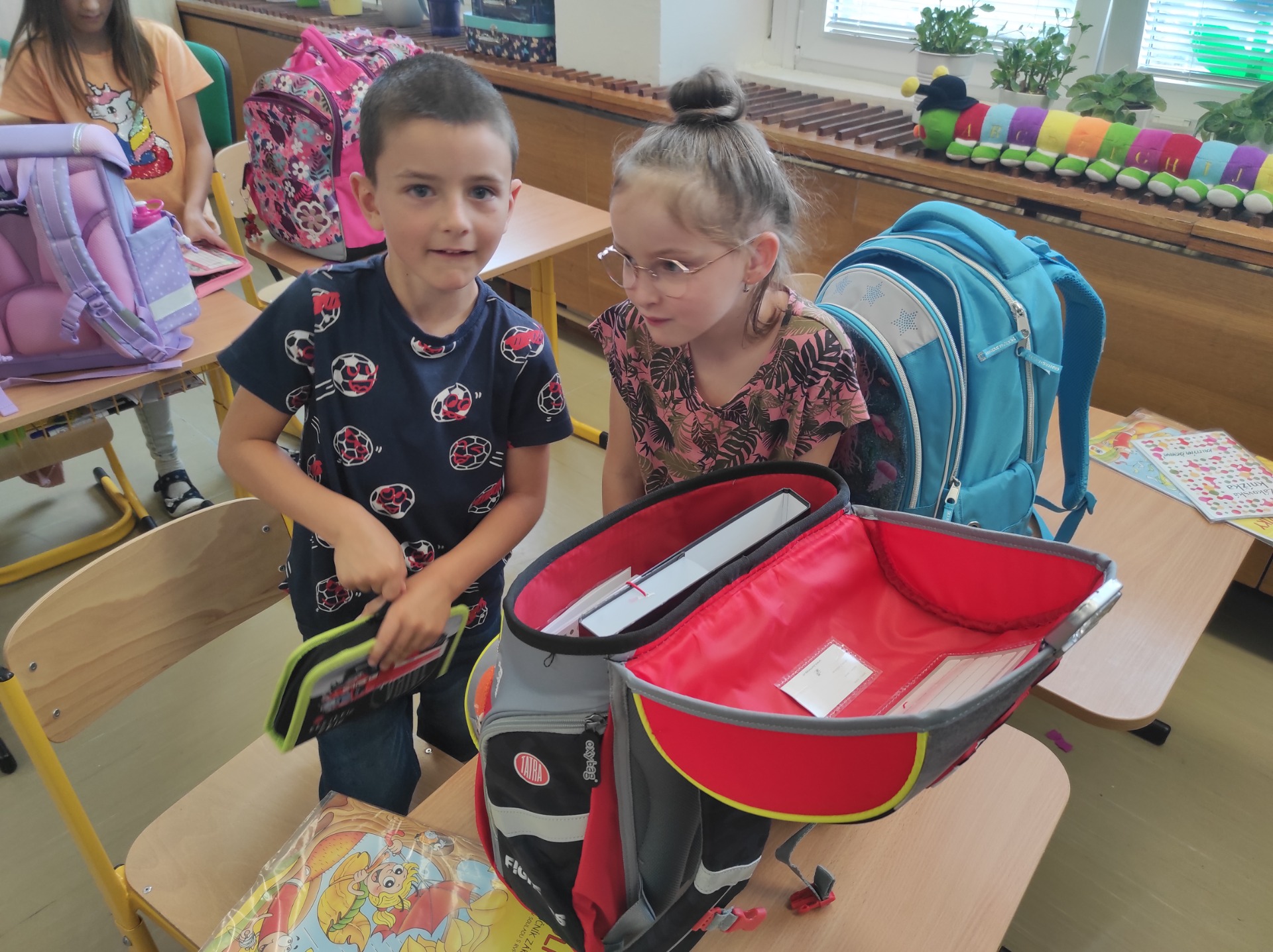 V hodinách prvouky začínáme poznávat školu, tělocvičnu, třídu, veškeré vybavení a pomůcky. Poznáváme, co vše potřebujeme k vyučování. Pochlubili jsme se svou aktovkou, penálem a ukázali si vybavení kufříku.