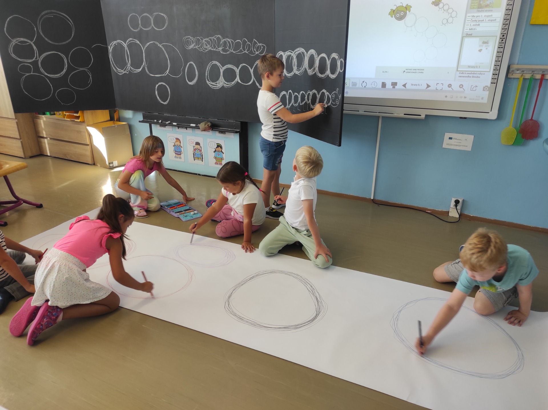V hodinách Prvouky si povídáme o naší škole, třídě, kamarádech a také o městě, ve kterém žijeme. V Českém jazyce se postupně seznamujeme s novými písmenky, hrajeme si s obrázky, zkoušíme číst i psát první slova a každý den poctivě hláskujeme – a za to si zaslouží velkou pochvalu opravdu všichni!