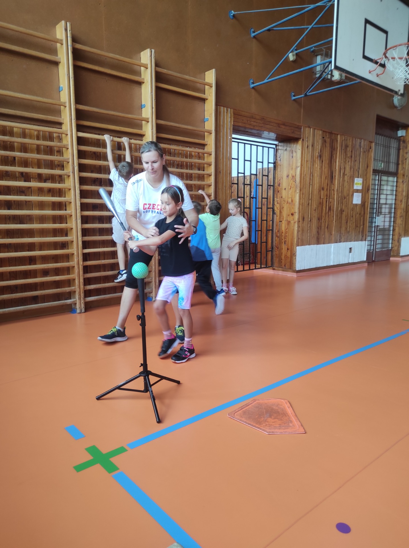 Pod jejím vedením jsme si vyzkoušeli různé aktivity – učili jsme se správně odpálit míček, trénovali jsme hody a nechyběly ani zábavné hry, při kterých jsme se pořádně proběhli a nasmáli. Kačka nám ukázala, že softball není jen o síle a rychlosti, ale také o soustředění, týmové spolupráci a radosti z pohybu.